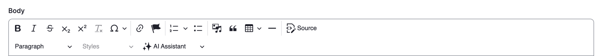 You will see a toolbar at the top of the WYSIWYG editor, with various formatting and editing options (ie: Bold, Italic, Strikethrough etc.) The options available will depend on the modules and plugins installed on your Drupal site.